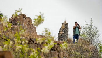 一位农民脚下的长城保护路